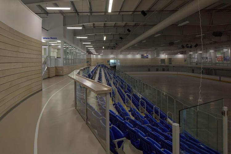 The 60,000 sq. ft. building features an elevated indoor walking track, a warm viewing area, multipurpose community rooms, change facilities, officials’ rooms, and food service spaces. The building is designed to support a wide range of community users, including athletes, schools, clubs, and families.
