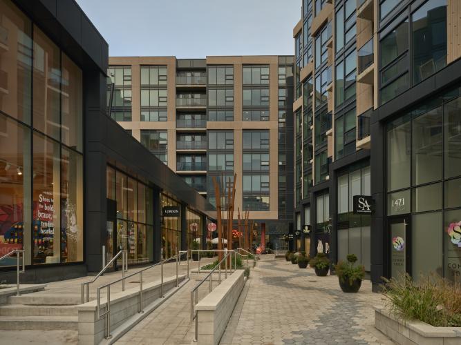 A key feature of the development is its publicly accessible pedestrian plaza, framed by cafés, shops, and restaurants, and enhanced with public art. Generous walkways and thoughtfully shaped urban spaces create an inviting environment for residents, visitors, and the broader community. Residential units are designed with careful attention to layout, privacy, exterior views, and solar orientation, ensuring a high-quality living experience.